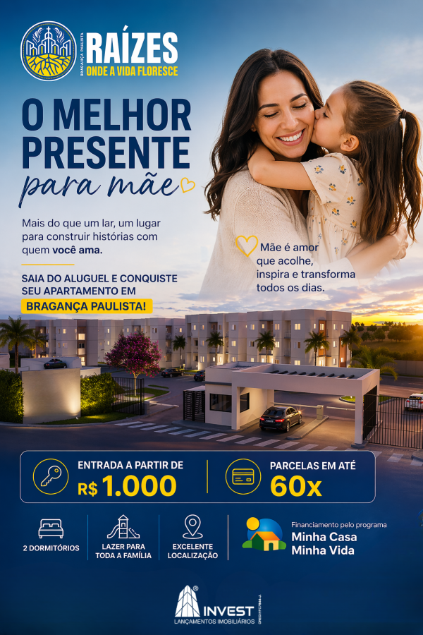 Previous Next Apartamento de 2 dormitórios com opção de suíte e lazer completo! Bem-vindo ao seu novo horizonteLocalizado na valorizada Zona Sul da cidade de Bragança Paulista, o Solaris é mais do que um endereço privilegiado.Aqui você encontra um estilo de vida pensado para quem valoriza conforto, segurança e lazer.O empreendimento conta com infraestrutura completa para você e sua família.O olhar alcança o horizonte, um cenário que se transforma a cada nascer e pôr do sol.Temos apartamentos de 2 dormitórios com e sem suíte com opção de varias plantas.Itens de lazer e segurança:PortariaBrinquedotecaPlaygroundPet PlaceBox DeliverySalão de FestasPiscina c/ SolárioLavanderiaBicicletárioFitnessPiscina InfantilEdifício GaragemMini MarketQuadra PoliesportivaChurrasqueiraAdministraçãoComércio*Valores, formas de pagamento e unidades disponíveis vide tabela de valores atualizadas **Imagens meramente ilustrativas e será entregue conforme memorial descritivo.O projeto se encontra aprovado na prefeitura municipal de Bragança Paulista em 15/08/2025 onde recebeu o alvará N° 975965958/2025 datado de 28/11/2025. Apesar de todo cuidado na obtenção das informações contidas neste material, elas não devem ser consideradas parte integrante de qualquer contrato. A inclusão no Programa Minha Casa Minha Vida está vinculado ao enquadramento de renda e demais regras do programa à época da assinatura do contrato de financiamento. As ilustrações, artes, fotos, mobiliário, peças de decoração e vegetação apresentada nos materiais de divulgação têm caráter exclusivamente promocional por tratar-se de bem a ser construído, sendo que as condições de comercialização, projetos e especificações são aquelas dos contratos e memoriais a serem firmados com adquirentes. Creci 26066-JPolítica de PrivacidadeNos comprometemos a nunca compartilhar seus dados com terceiros. Os dados aqui captados (Nome, E-mail e Telefone) serão utilizados única e exclusivamente pela incorporadora responsável por esse empreendimento para que seja possível o contato com o cliente e apresentação do produto objetivo dessa campanha. R$ 333.396,00 Venda Vila Aparecida Cód. 961 Aceitafinanciamento